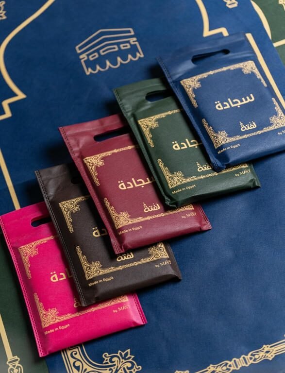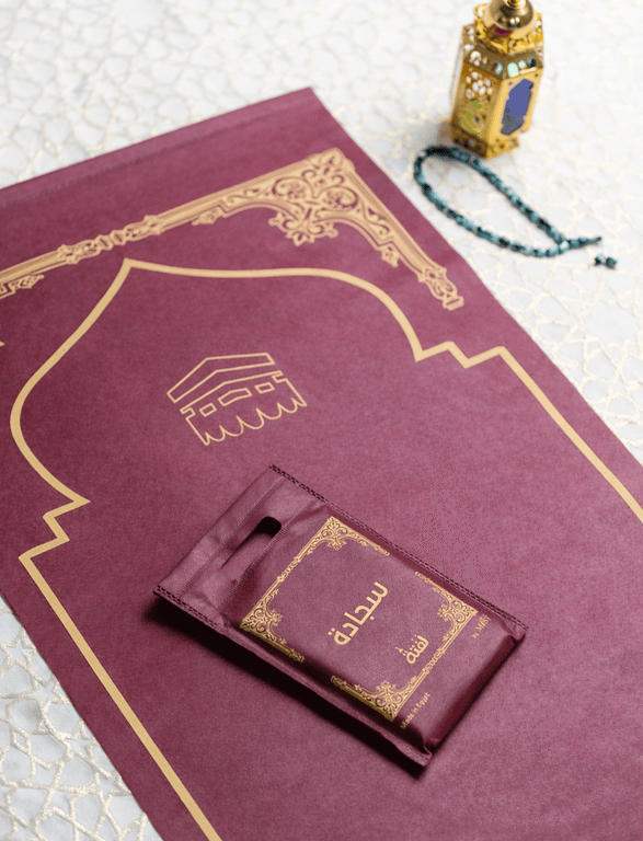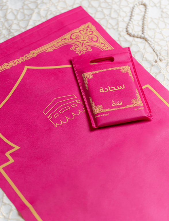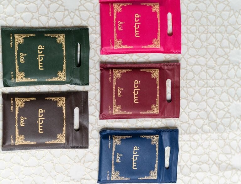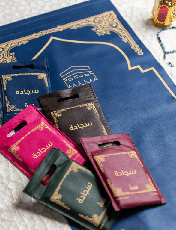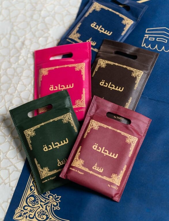 سجادة الصلاة سهلة الطي ولا تأخذ مساحة كبيرة داخل الحقيبة، وهي متوفرة بخمسة ألوان مختلفة لتناسب جميع الأذواق.